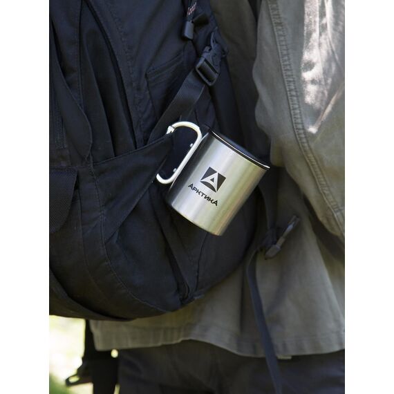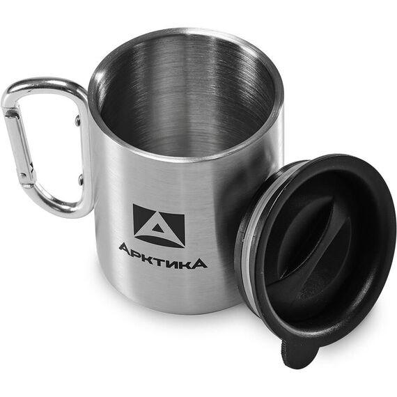 Термокружка невакуумная с двойными стенками, с крышкой для защиты от пыли, объем 300 мл. Ручка-карабин.