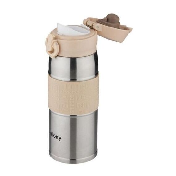 Термокружка Цвет: бежевый Силиконовая вставка на корпусе, силиконовая крышка Эргономичный дизайн крышки позволяет легко открывать её одной рукой Термокружка имеет оптимальный размер. Её удобно держать в руке Плотно закрывающаяся крышка позволит надолго сохранить температуру напитка, специальный фиксатор не позволит крышке случайно открыться. Объем: 350 мл Двойные вакуумные стенки из нержавеющей стали Материал: нержавеющая сталь (201), силикон, полипропилен