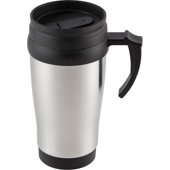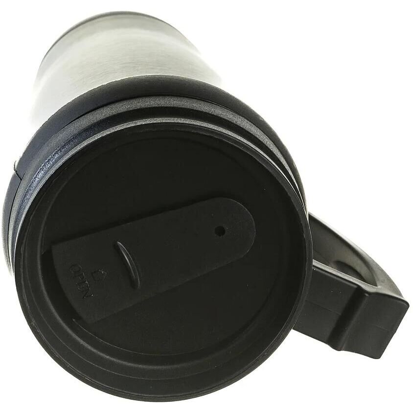 Объём: 420 мл. Размер: 17*8 см диам горлышка: 7,2 см Материал: нержавеющая сталь SS201, внутри- пластиковая колба, крышка — пластик (полипропилен). Удобная крышка позволяет пить во время ходьбы, езды в автомобиле и т.д. Не рекомендуется переворачивать кружку крышкой вниз, т.к. возможно вытекание жидкости через отверстие выхода пара и клапан крышки)