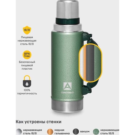 Термос АРКТИКА 1.25 л, 106-1250P (зеленый)