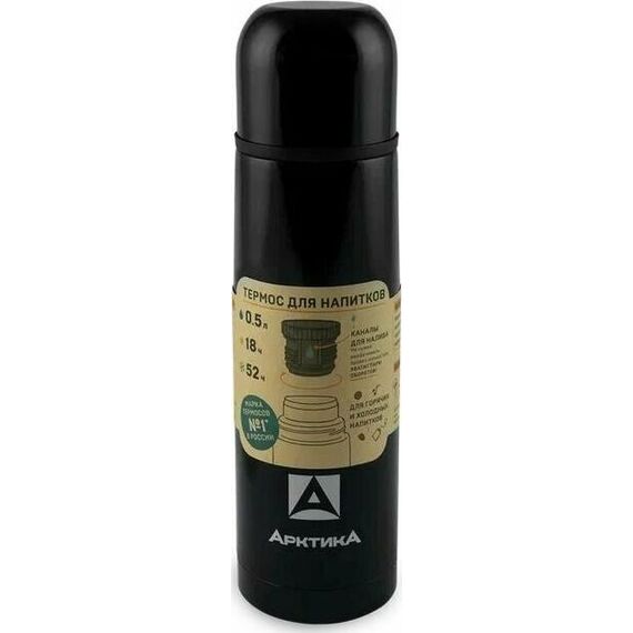 Вакуумный термос для чая 0,5 л, в котором удобно заваривать чай / травяной сбор / шиповник. Данный термос без кнопки, но у него есть каналы для налива напитка. Пробку не нужно полностью выкручивать, чтобы налить чай: достаточно 1-2 оборотов. Арктика термос для воды / кофе / мате - компактный (вес - 248гр, высота - 24,8см) и без проблем поместится в детский рюкзак или женскую сумку. Сохраняет тепло и холод до 18 часов и подходит для спорта / похода / школы / прогулок в парке / поездок и путешествий.