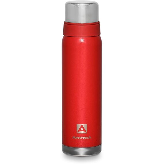 Термос с узким горлом и глухой пробкой, 2 накручивающиеся чашки в комплекте. Молотковая эмаль на корпусе дополнительно защищает термос от сколов и царапин. Объем 0,9 л.