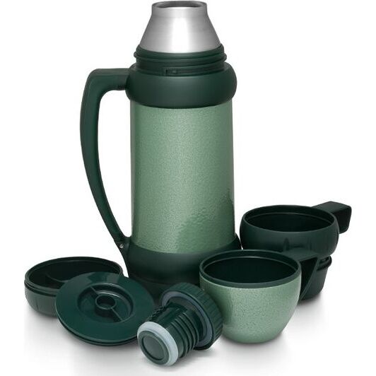 Термос с узким горлом, пробка с двойным силиконовым уплотнителем, покрытие-молотковая эмаль, съемное дно, 2 эргономичные кружки, ручка