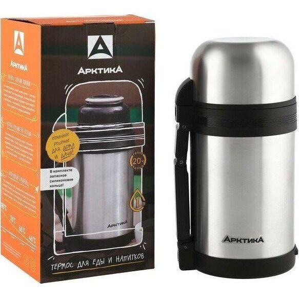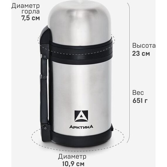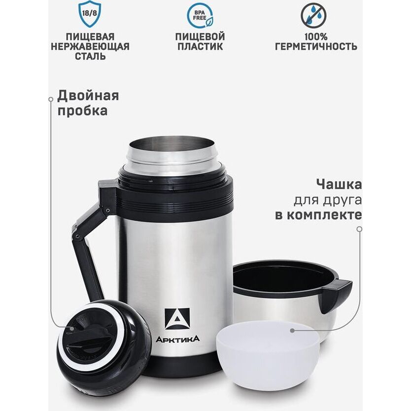 Термос универсальный с широким горлом, двойная пробка, складная ручка, дополнительная чаша, съемный ремешок