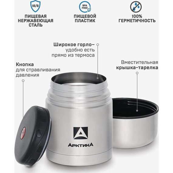 Термос с супершироким горлом, пробка с клапоном спуска давления( защита от присасывания), складная ложка, термо чехол
