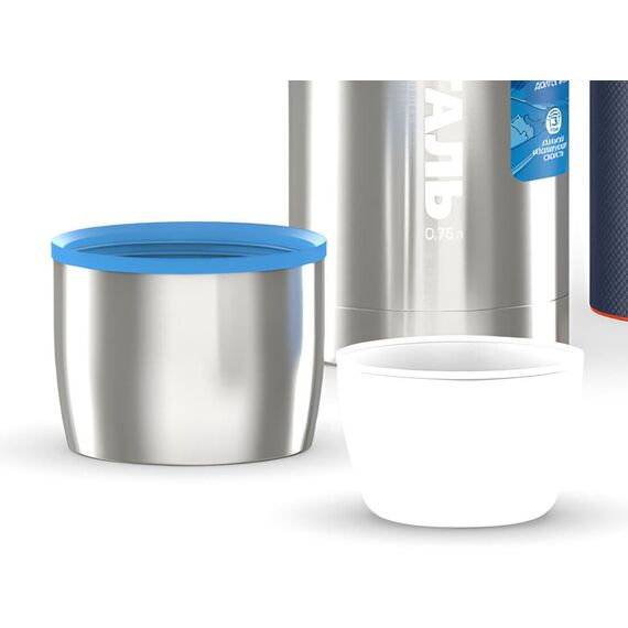 Термос «Биосталь-Авто» с узкой горловиной. Объём 750 мл. Высота 233 мм. Диаметр 88 мм. Вес 510 г. Время удержания тепла 28 ч. Время удержания холода 36 ч.Термос с защитным лаковым покрытием корпуса. Изготовлен из высококачественной нержавеющей стали 18/8 (AISI 304). Вторая чашка из прочного пищевого пластика. Пробка с дополнительной изоляцией и функцией «термоконтроль» позволяет наливать напитки без полного откручивания пробки под любым углом.