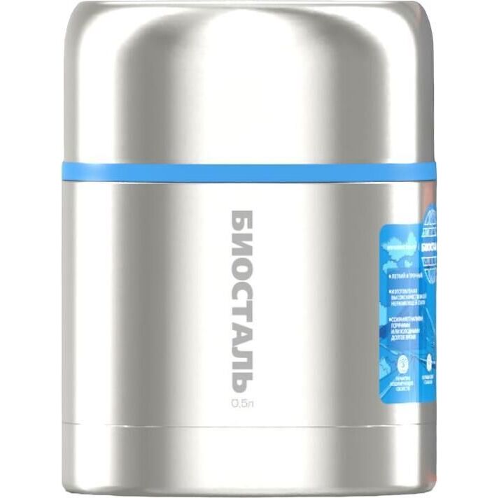 Термос "Биосталь - Авто"с широким горлом, суповой, 0.5л. Сохраняет напитки и продукты горячими или холодными долгое время. Изготовлен из высококачественной нержавеющей стали. Предназначен для первых и вторых блюд.