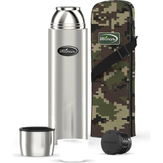 Термос "Биосталь-Охота" с узкой горловиной, в чехле объем: 1.2 л корпус из стали сохраняет тепло до 19 ч особенности: вакуумный, крышка-чашка чехол вес: 790 г