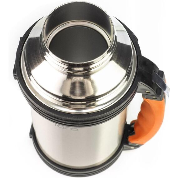 LR04-03 термос LARA - 1.20л, ручка, кнопка, ремешок, двойные стенки, крышка-стаканчик, нерж сталь