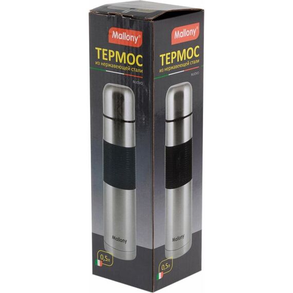 Емкость 0,5 л. Материал: корпус – нержавеющая сталь с силиконовыми вставками, колба – нержавеющая сталь s/s 201, полипропилен. - Колба из нерж стали с двойными стенками. - Герметичный клапан (пробка) с кнопкой - Ширина горла 4,5 см Термос предназначен для хранения горячих и холодных напитков, супов и других жидкостей. Укомплектован пробкой с кнопкой. Такая пробка удобна в использовании и позволяет, не отвинчивая ее, наливать напитки после простого нажатия. Термос оснащен крышкой-чашкой. Упаковка: цветная коробка