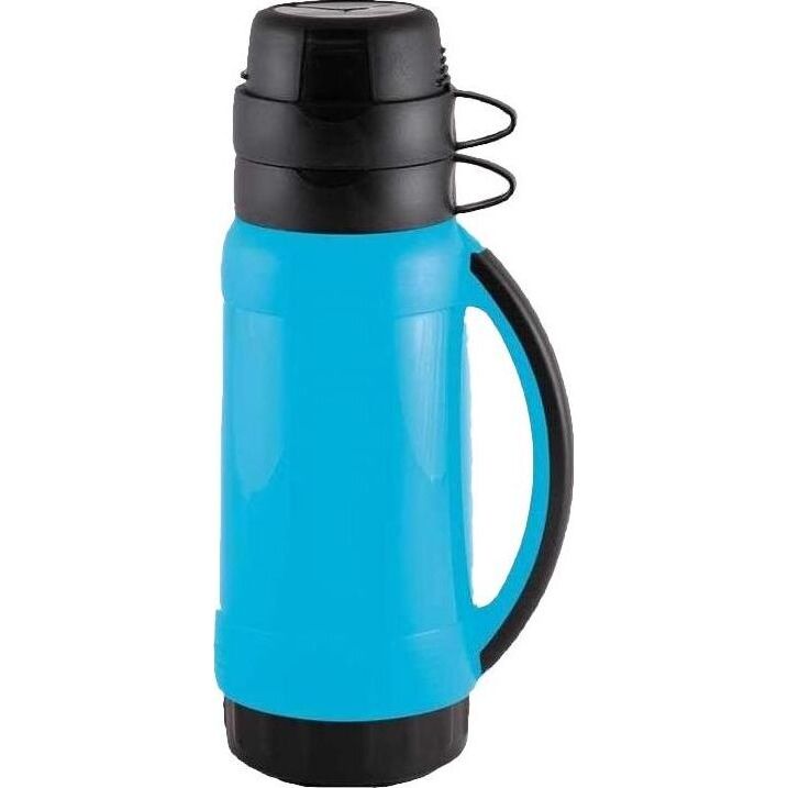 Термос в пластиковом корпусе Объем - 1,8 литр колба стеклянная с двойными стенками, в комплекте - 2 чашки с ручками из пластика. Цвет: Голубой Упаковка - картонная коробка с ячейками, стикер, пакет. Термос изготовлен из прочного пластика и снабжен стеклянной изоляционной колбой с двойными стенками, что обеспечивает длительное хранение любимых блюд в необходимом температурном режиме. Термос имеет удобную ручку и завинчивающуюся крышку с двумя чашками одинаковой емкости.