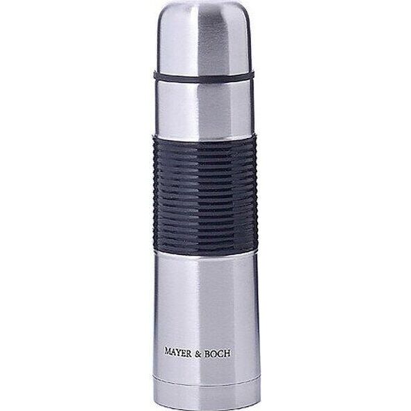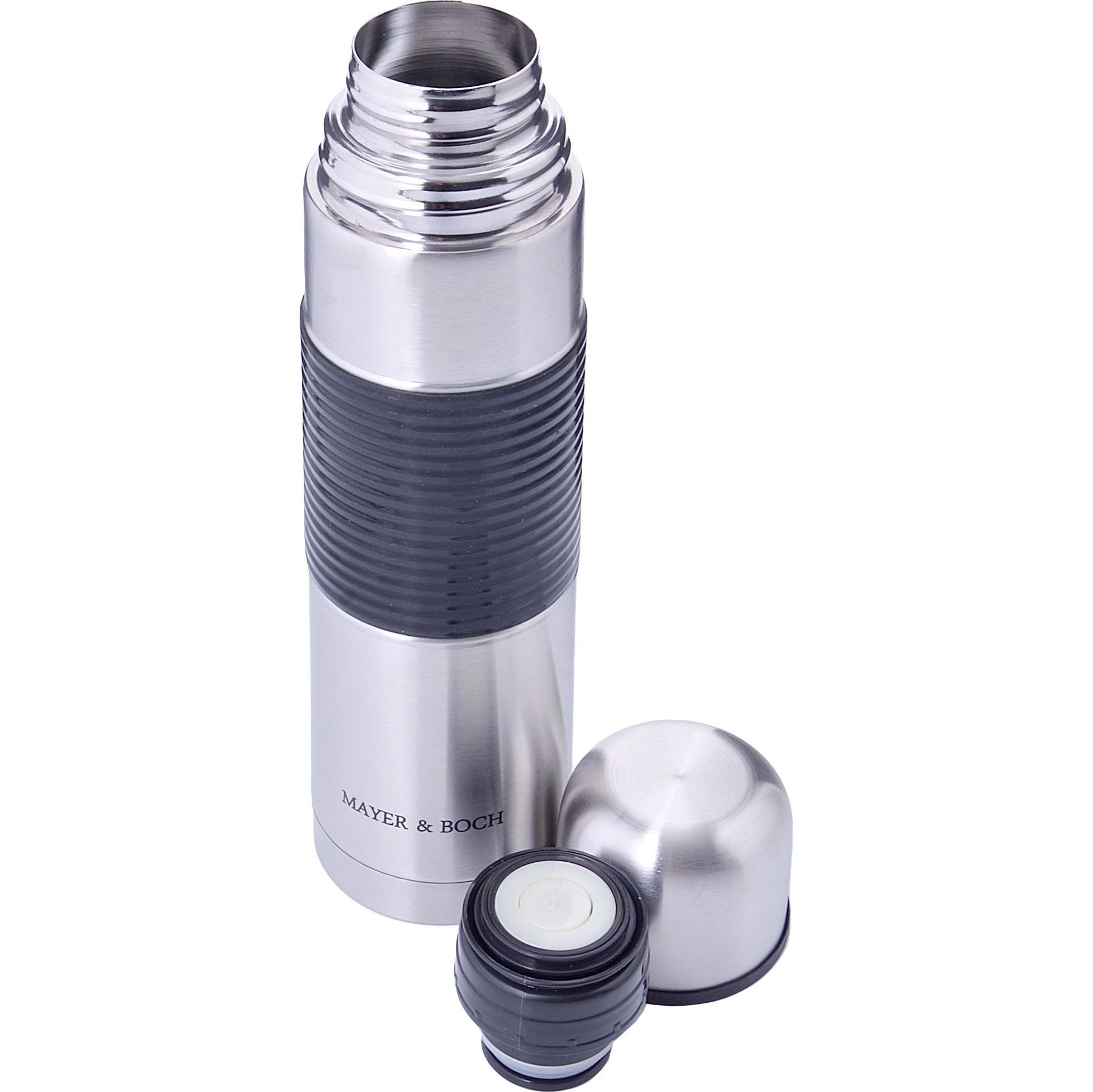Термос МВ (х24). Корпус: нержавеющая сталь. Внутренняя колба: нержавеющая сталь. Крышка: полипропилен. Внешняя вставка: силикон. Цвет: серебристый, черный. Диаметр горлышка: 4,5 см. Объем: 750 мл. Размер упаковки: 8,5 х 8,5 х 30 см. Вес: 490 г. Страна-изготовитель: Китай. Упаковка: коробка.