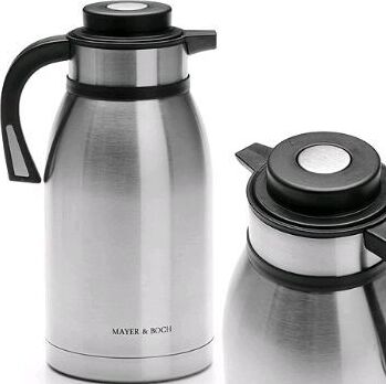ТермосMAYER&BOCH выполнен из качественной нержавеющей стали, которая не вступает в реакцию с содержимым термоса и не изменяет вкусовых качеств напитка. Двойная стенка из нержавеющей стали сохраняет температуру на более длительный срок. Вакуумный закручивающийся клапан предохраняет от проливаний, а удобная кнопка-дозатор избавит от необходимости каждый раз откручивать крышку. Данная модель термоса прочная, долговечная и в тоже время легкая. Стильный металлический термос понравится абсолютно всем и впишется в любой интерьер кухни. Легко и просто моется.