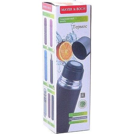 Термос в чехлеMAYER&BOCH выполнен из качественной нержавеющей стали, которая не вступает в реакцию с содержимым термоса и не изменяет вкусовых качеств напитка. Двойная стенка из нержавеющей стали сохраняет температуру на срок до 6-ти часов. Вакуумный закручивающийся клапан предохраняет от проливаний. Цветное покрытие обеспечивает защиту от истирания корпуса. Данная модель термоса прочная, долговечная и в тоже время легкая. Стильный металлический термос понравится абсолютно всем и впишется в любой интерьер кухни. Легко и просто моется.