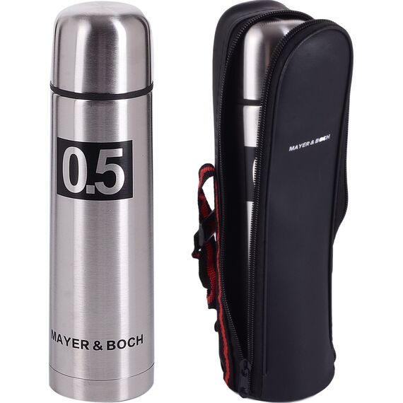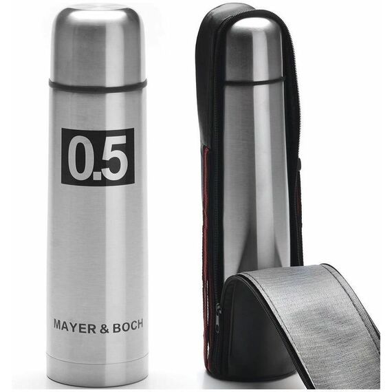 Термос с чехломMAYER&BOCH выполнен из качественной нержавеющей стали, которая не вступает в реакцию с содержимым термоса и не изменяет вкусовых качеств напитка. Двойная стенка из нержавеющей стали сохраняет температуру на срок до 6-ти часов. Вакуумный закручивающийся клапан предохраняет от проливаний. Цветное покрытие обеспечивает защиту от истирания корпуса. Данная модель термоса прочная, долговечная и в тоже время легкая. Стильный металлический термос понравится абсолютно всем и впишется в любой интерьер кухни. Легко и просто моется.