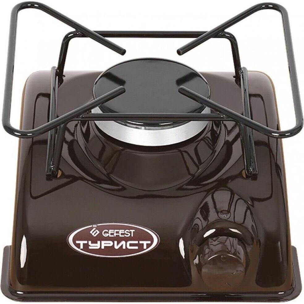 Плита газовая туристская * Цвет: коричневый. Фасад эмалированный * Габаритные размеры ШхГхВ: 17х19.5х9.5 см * Термостойкое эмалированное покрытие стола (корпуса) * Фиксированное положение «малое пламя» * Фигурная решетка *