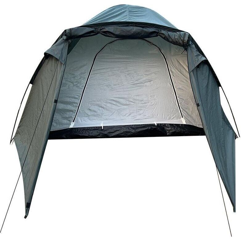 Не автоматическая Вместимость: 4 человека Размер: (100+250)*280*185/165 см Двухслойная, 1 вход Материал тента: полиэстер 190T PU1500 Покрытие: полиуретан Водонепроницаемость (мм/в.ст): 1500 Пол: полиэтилен 110 г/м2 Материал каркаса: фибергласс Диаметр дуг: 11 мм, 9,5 мм Москитная сетка на вход В комплекте штормовые оттяжки (6 шт) и колышки (16 шт) Материал сумки-переноски: полиэстер 190T