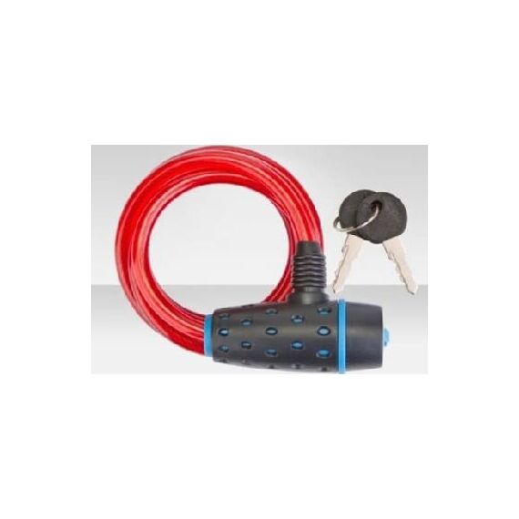 Трос-замок 87318 с ключом, со стальным тросом 8х1800 мм, красная оболочка, чёрно-синий замок