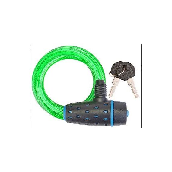 Трос-замок 87318 с ключом, со стальным тросом 8х1800 мм, зелёная оболочка, чёрно-синий замок