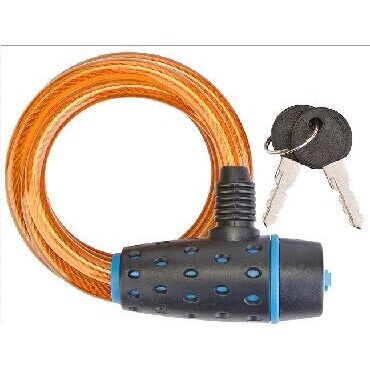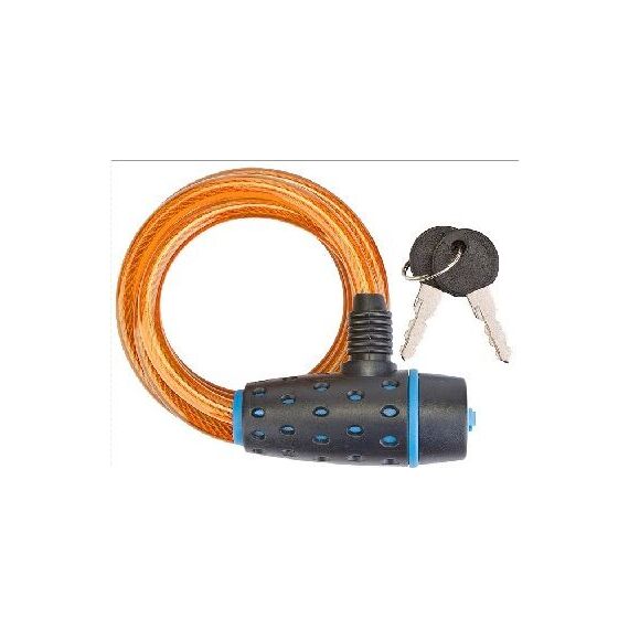 Трос-замок 87318 с ключом, со стальным тросом 8х1800 мм, жёлтая оболочка, чёрно-синий замок