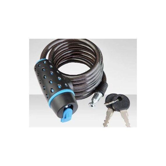 Трос-замок 87318 с ключом, со стальным тросом 8х1800 мм, чёрная оболочка, чёрно-синий замок