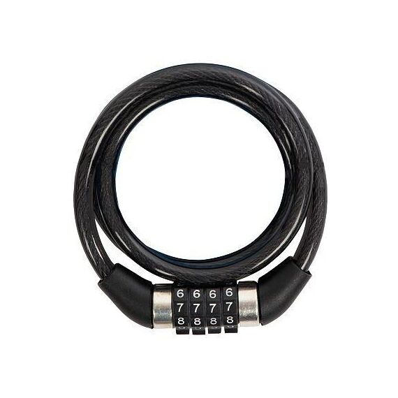 Диаметр троса: 8 мм Длина троса 1200 мм Материал: трос - сталь, пвх-покрытие, цинк (кодовый цилиндр), пластмасса Сменная кодовая комбинация. Упаковка: картонная подложка Для защиты велосипедов, мотоциклов, колясок; запирания ворот, хозяйственных и бытовы