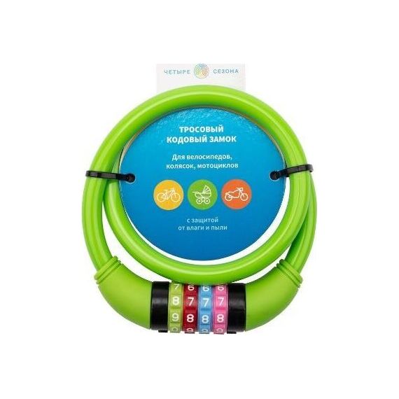 Тросовый замок с ключом ЧЕТЫРЕ СЕЗОНА – недорогое и надежное средство от кражи велосипедов, мопедов, колясок, рекламных щитов, вывесок и другого имущества. Отличается простой конструкцией, удобством транспортировки и высокой степенью стойкости к взлому.; Трос в износостойкой пластиковой оболочке имеет гибкую конструкцию с надежным замком. В комплект входит компактный ключ, который с легкостью помещается в кармане или в кошельке.; Длина замка: 65 тсм