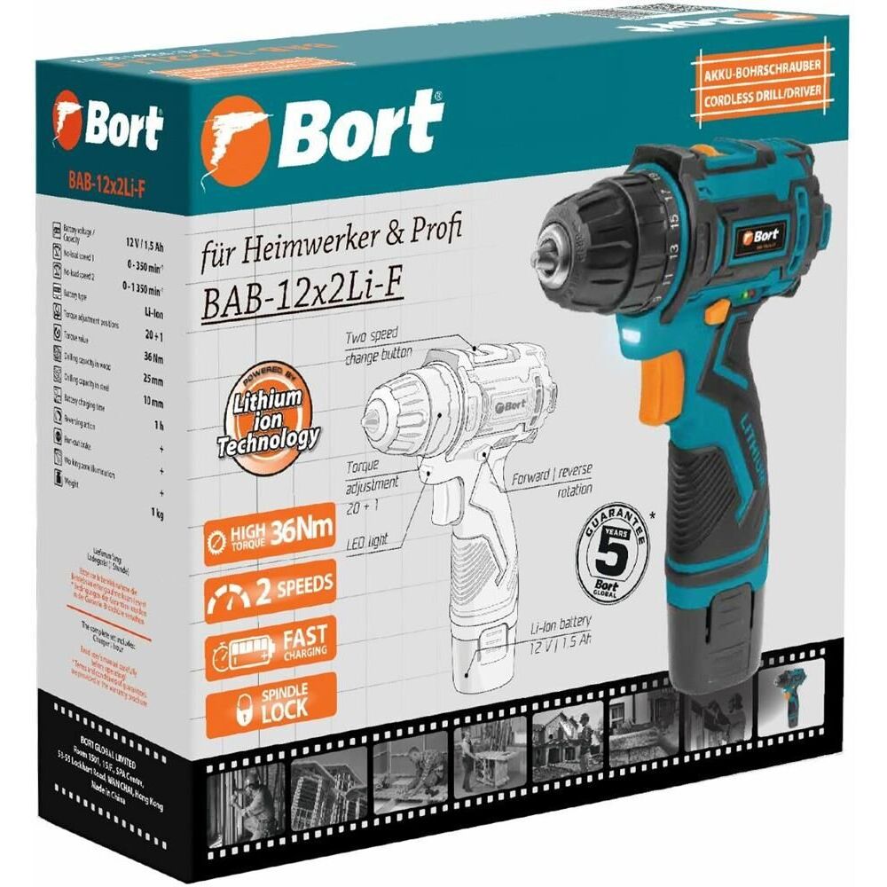 Аккумуляторная дрель BORT BAB-12X2LI-F (1X1,5 AH)