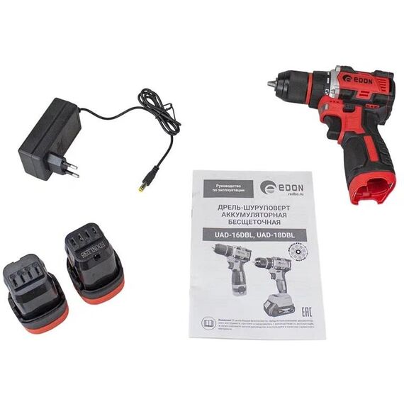 Дрель-шуруповёрт EDON UAD-16DBL черный/красный 40095 16В, 2аккум