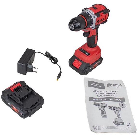 Дрель-шуруповёрт EDON UAD-18DBL черный/красный 40094 18В, 2аккум., бесщеточный