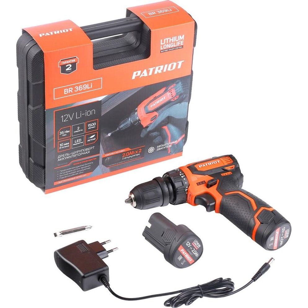 Дрель-шуруповерт PATRIOT 180201369 BR 369Li, две АКБ Li-Ion