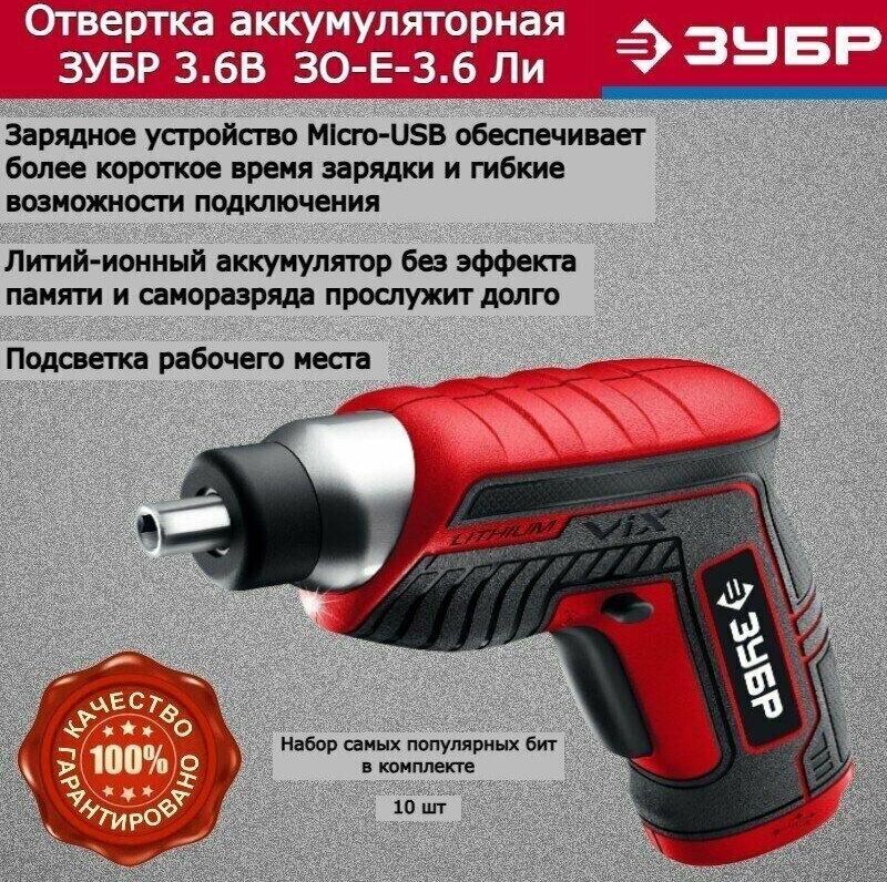Аккумуляторная отвертка ЗУБР ЗО-Е-3.6 Ли VIX отвертка аккумуляторная 3.6 В, в коробке