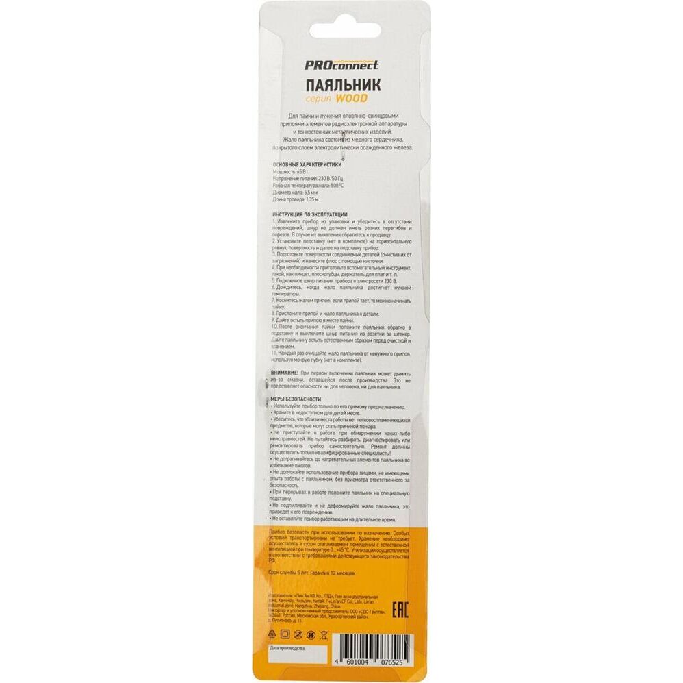 Паяльники PROCONNECT (12-0176-4) ПАЯЛЬНИК ПД 220В 65ВТ ДЕРЕВЯННАЯ РУЧКА (БЛИСТЕР)