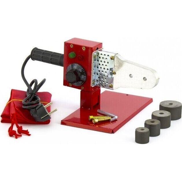 Аппарат для сварки (пайки) пластиковых труб торговой марки Kronwerk предназначен для прочного соединения труб из полипропилена и полиэтилена в домашних условиях. Насадки имеют тефлоновое покрытие, предупреждающее налипание пластика к их поверхности. Набор упакован в прочный блистер. В комплект поставки аппарата входят: Подставка. Четыре сменные насадки, диаметром 40, 32, 25, и 20 мм. Ключ шестигранный.