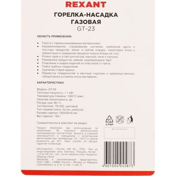 Горелка REXANT (12-0023) GT-23 - пьезоподжиг