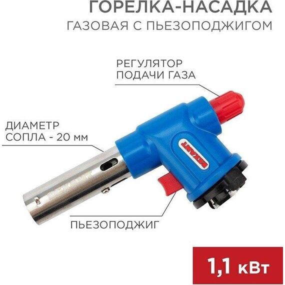 Газовая горелка-насадка, мощность: 1,1кВт 0,946 ккал , температура пламени: 1400 С (макс.), расход газа: 80 гр/ч, тип поджига: встроенный пьезо, материал: медь + нержавеющая сталь + алюминий + сплав цинка + пластик, сфера применения: от плавления и сварки до копчения продуктов, тип газового баллона: ТВ-220 (цанговый).