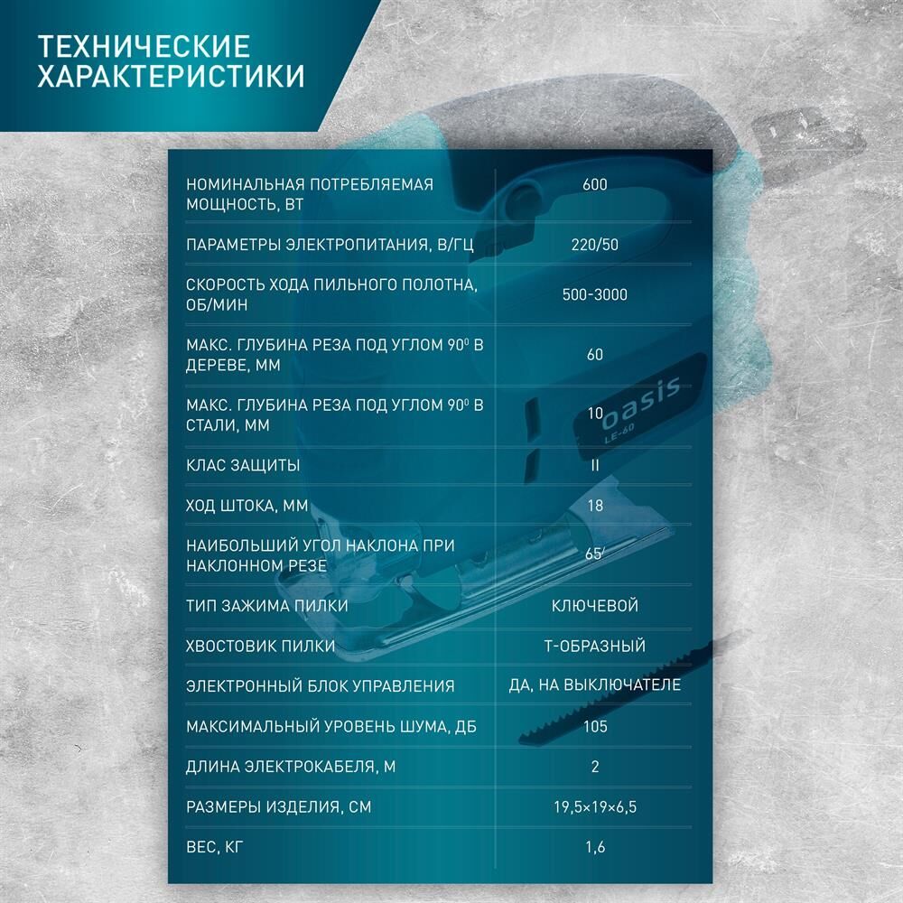 600 Вт; 220/50 В/Гц; 500-3000 ; Ход штока 18 мм; Максимальная глубина пропила в дереве 60 мм; Максимальная глубина пропила в стали 10 мм;