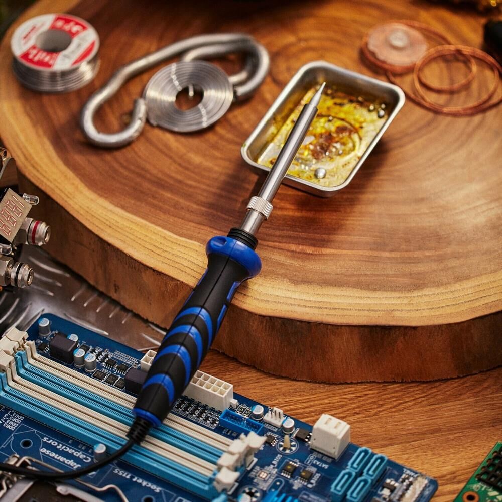 Паяльник с долговечным жалом мощностью 25Вт REXANT предназначен для ручного монтажа/демонтажа электронных компонентов и других мелких деталей. Подходит как для любительского, так и для профессионального использования. Долговечное жало паяльника состоит из медьсодержащего сердечника, покрытого слоем электролитически осажденного железа, отличающегося высокой стойкостью к коррозии. При соблюдении ряда предосторожностей жало способно работать длительное время без утраты эксплуатационных свойств, а в случае необходимости его можно легко и быстро заменить (сменное жало в комплект не входит). Нагреватель имеет керамическую трубку, которая повысит энергоэффективность прибора. Паяльник оснащен ударопрочной рукояткой из термостойкого пластика с резиновой накладкой, которая сделает работу с инструментом легкой и приятной.