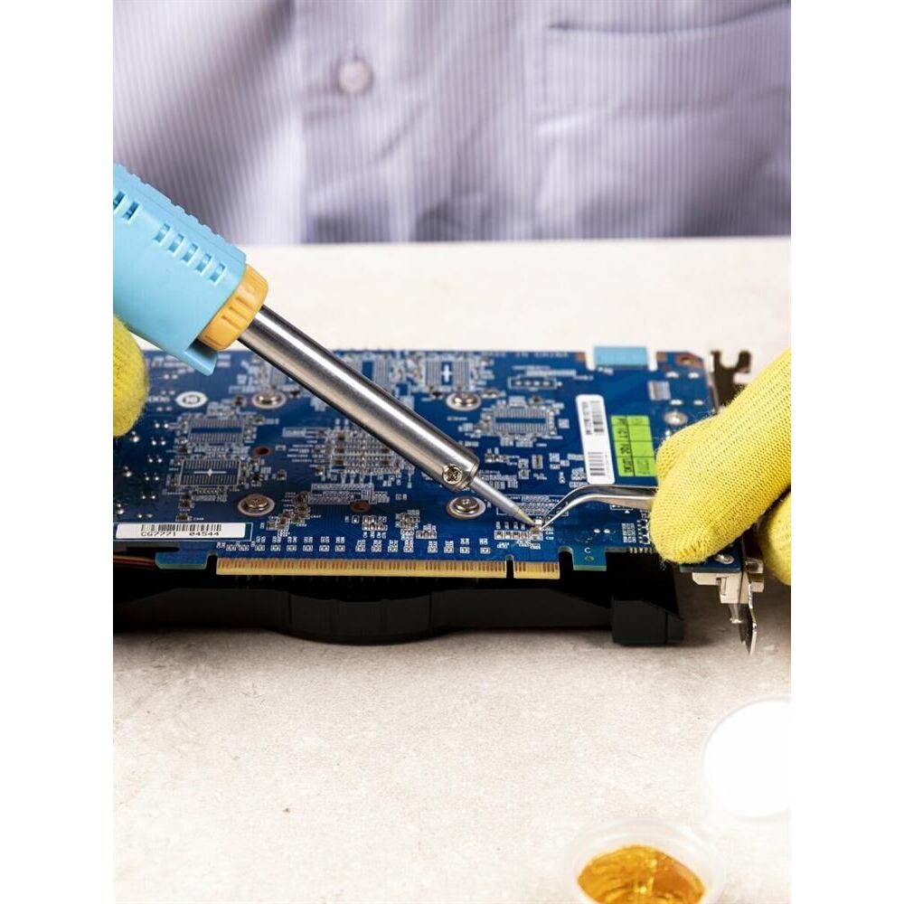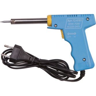 Паяльник импульсный 30-70 Вт предназначен для ручного монтажа радиоэлементов. Он используется для пайки электродеталей в двух мощностных режимах: 30 Вт и 70 Вт. Особенность данного инструмента заключается в том, что максимальная P и ускоренный разогрев активируются нажатием и удержанием курка. Это позволяет оператору сначала установить жало инструмента в определенную точку пайки, а затем нажатием кнопки на корпусе перевести паяльник в максимальный рабочий режим. Паяльник выполнен в форме пистолета с индикатором включения и имеет очень удобную эргономичную рукоятку из ударопрочного пластика. Характеризуется экономичным энергопотреблением. Длина провода: 1,35 м. Удобен для распайки кабелей в шкафах, а также быстрых демонтажных работ.