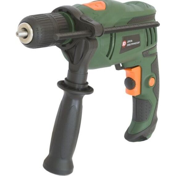 Ручная электрическая ударная дрель (ударная сверлильная машина) Калибр ДЭ-680ЕРУ+ предназначена для сверления отверстий в цветных и чёрных металлах,пластмассах,дереве,кирпиче,бетоне и других строительных материалах.Быстрозажимной патрон,дополнительная рукоятка,ограничитель глубины сверления,регулировка скорости,реверс кнопка фиксации клавиши выключателя.Характеристики,Потребляемая мощность 680 Вт,Частота вращения шпинделя на холостом ходу 0-3000 об/мин,Диаметр зажимаемого сверла,мм 2-13 мм,Тип патрона быстрозажимной,Максимальный диаметр сверления: - металл 13 мм,- дерево 20 мм,- бетон 10 мм,Класс безопасности (ГОСТ Р МЭК 60745-1-2009) II,Длина шнура питания с вилкой,не менее 2 м,Электродвигатель однофазный коллекторный,Номинальное напряжение/Частота 230В/50Гц,Габариты в упаковке (ДхШхВ) 300х80х250 мм,Вес (брутто/нетто) 2.3/2.1.
