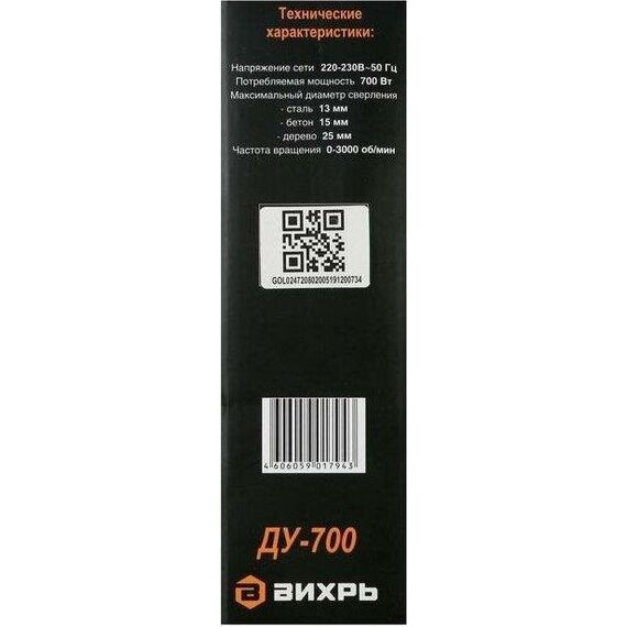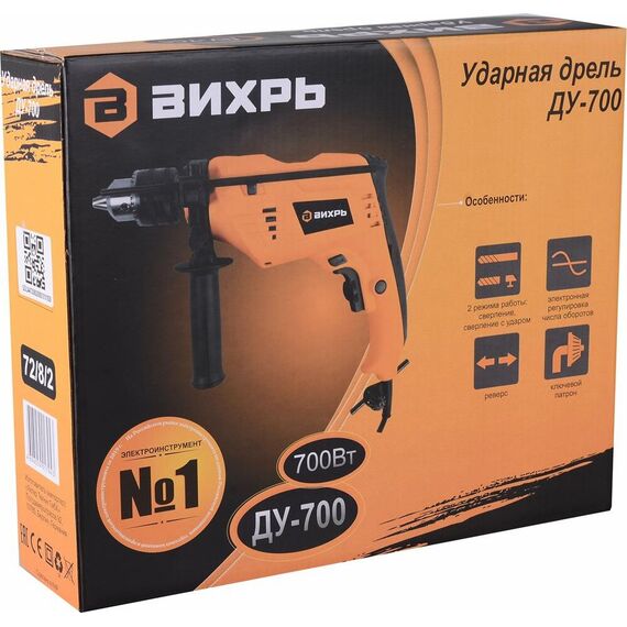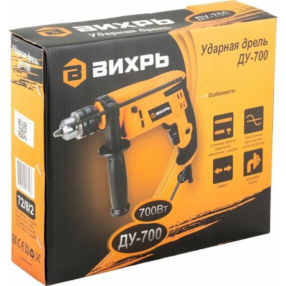 Дрель ударная ВИХРЬ ДУ-700 700Вт 72/8/2