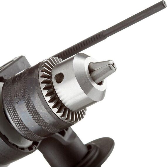 Ударная дрель Зубр МАСТЕР ДУ-810 ЭРМ2 применяется для сверления отверстий в дереве, металле и кирпиче. Регулировка числа оборотов позволяет выбрать оптимальную скорость в зависимости от вида работ и материала. На основании сетевого шнура есть специальное крепление для патронного ключа. В комплект входит глубиномер, что позволяет сверлить точные по размерам несквозные отверстия. Технические характеристики Зубр ДУ-810 ЭРМ2 Мах диаметр сверления (дерево), мм 20 Max диаметр сверления (металл), мм 10 Мощность, Вт 810 Наличие реверса да Наличие удара да Длина кабеля, м 2 Вес, кг 2 Регулировка оборотов да Габариты, мм 305x75x250 Число скоростей 1 Тип патрона ключевой Мах диаметр сверления (бетон), мм 13 Частота вращения шпинделя, об/мин 0-2800 Комплектация коробка Частота ударов, уд/мин 0-42000 Автоматически отключающиеся при износе щетки нет Плавный пуск да Max размер патрона, мм 13 Легкий доступ к щеткам нет