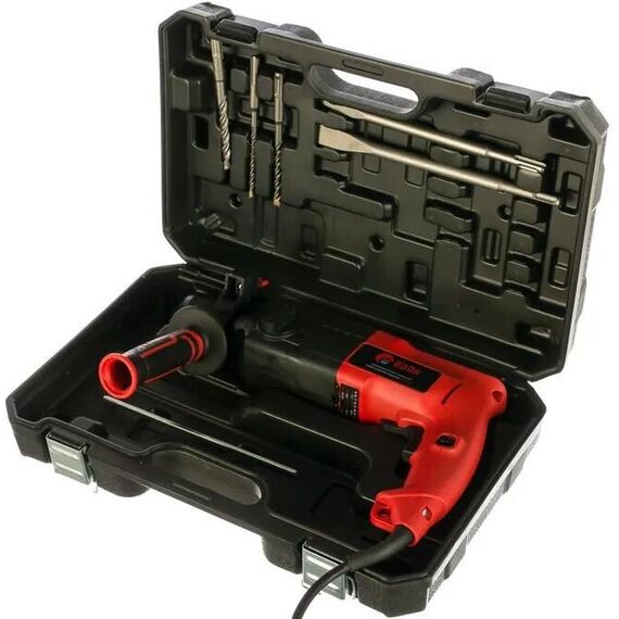 Мощность - 950 Вт.; Макс. число оборотов холостого хода - 1200 об/мин.; Макс. энергия удара - 2,3 Дж.; Макс. частота ударов - 4850 уд/мин.; Макс. диаметр сверления (металл/дерево/бетон) - 13/30/24 мм.; Длина сетевого кабеля - 2 м. Комплектация: - перфоратор - 1 шт.; - долото SDS-plus - 1 шт.; - пика SDS-plus - 1 шт.; - бур SDS-plus 6 мм - 1 шт.; - бур SDS-plus 8 мм - 1 шт.; - бур SDS-plus 10 мм - 1 шт.; - патрон SDS-plus PA6-GF35 - 1 шт.; - стержень ограничитель - 1 шт.; - руководство по эксплуатации - 1 шт.; - пластиковый кейс - 1 шт.
