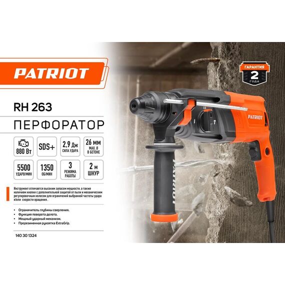 Перфоратор PATRIOT 140301324 Перфоратор RH 263, SDS+,