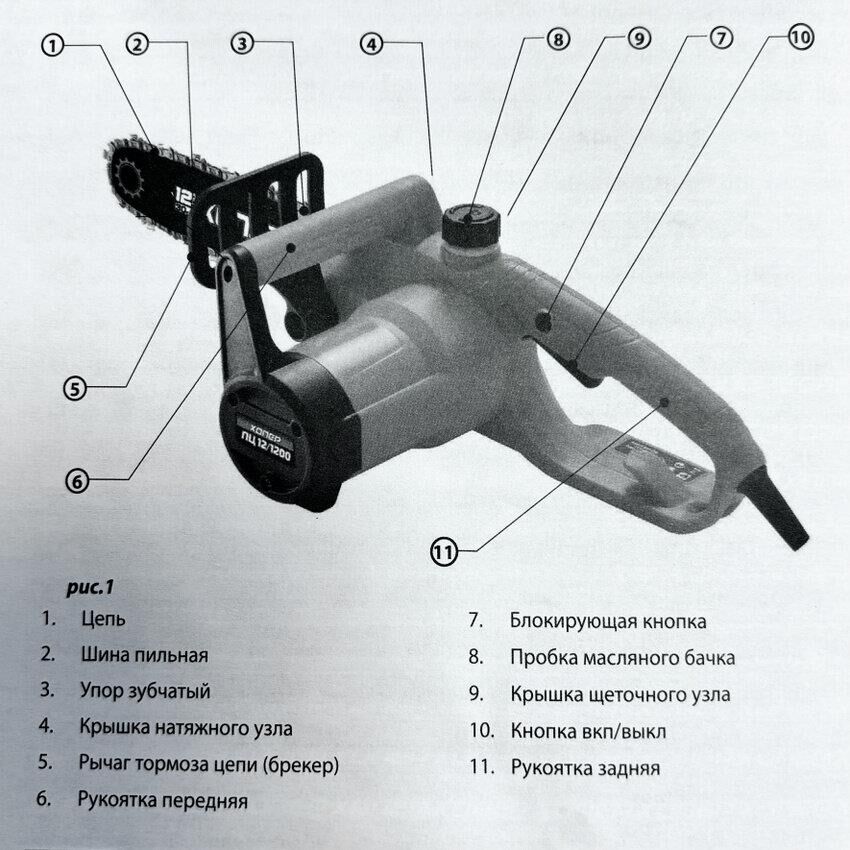 Пила электрическая цепная ХОПЕР ПЦ-12/1200 (1200W, шина 12 )