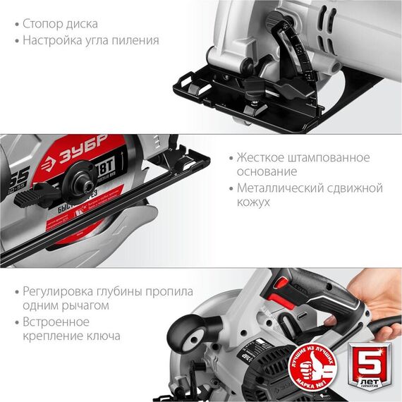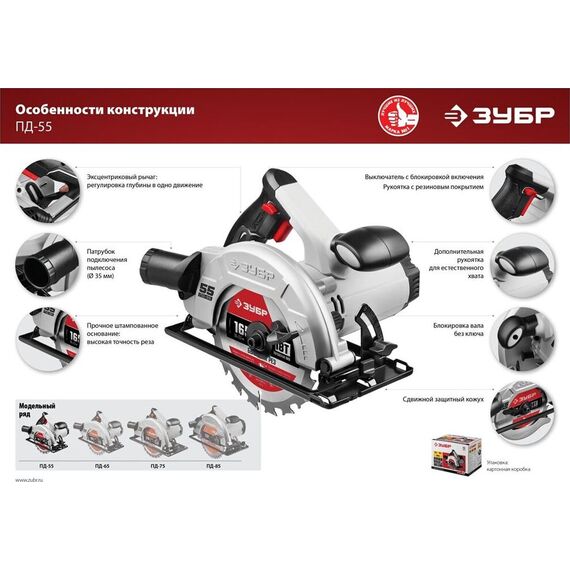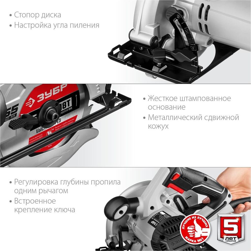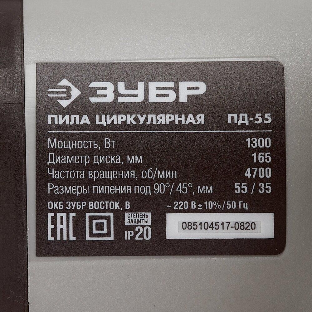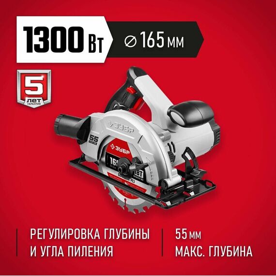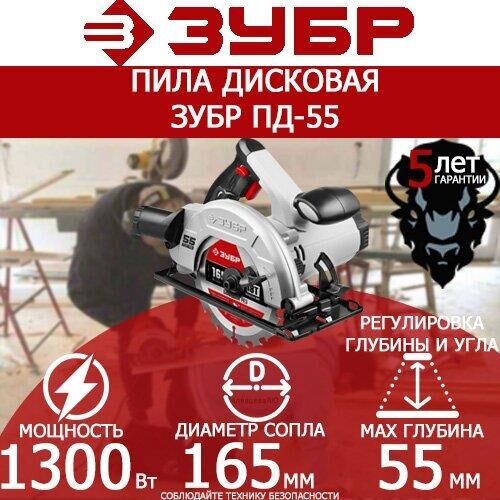 Пила дисковая ЗУБР ПД-55 Пила дисковая, 90°-55 мм, диск 165 мм, 1300 Вт