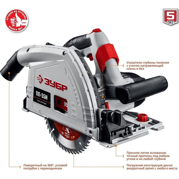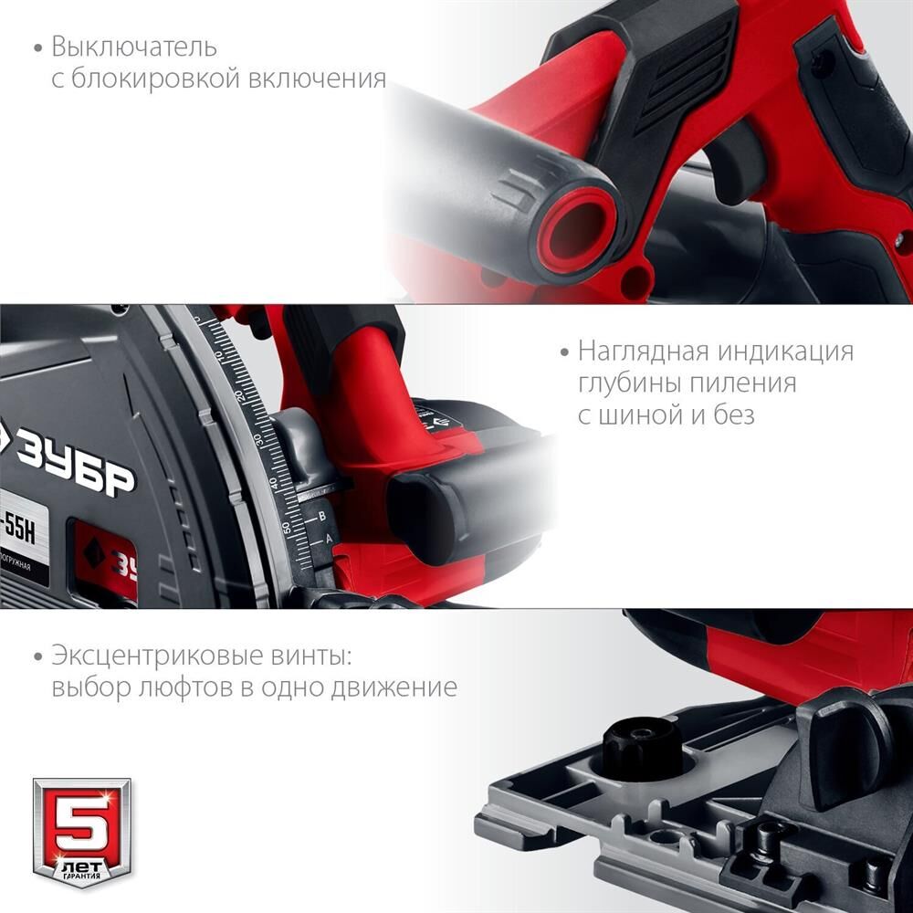 Пила ЗУБР ПП-55Н Пила погружная с шиной, 90°-55 мм, диск 165 мм