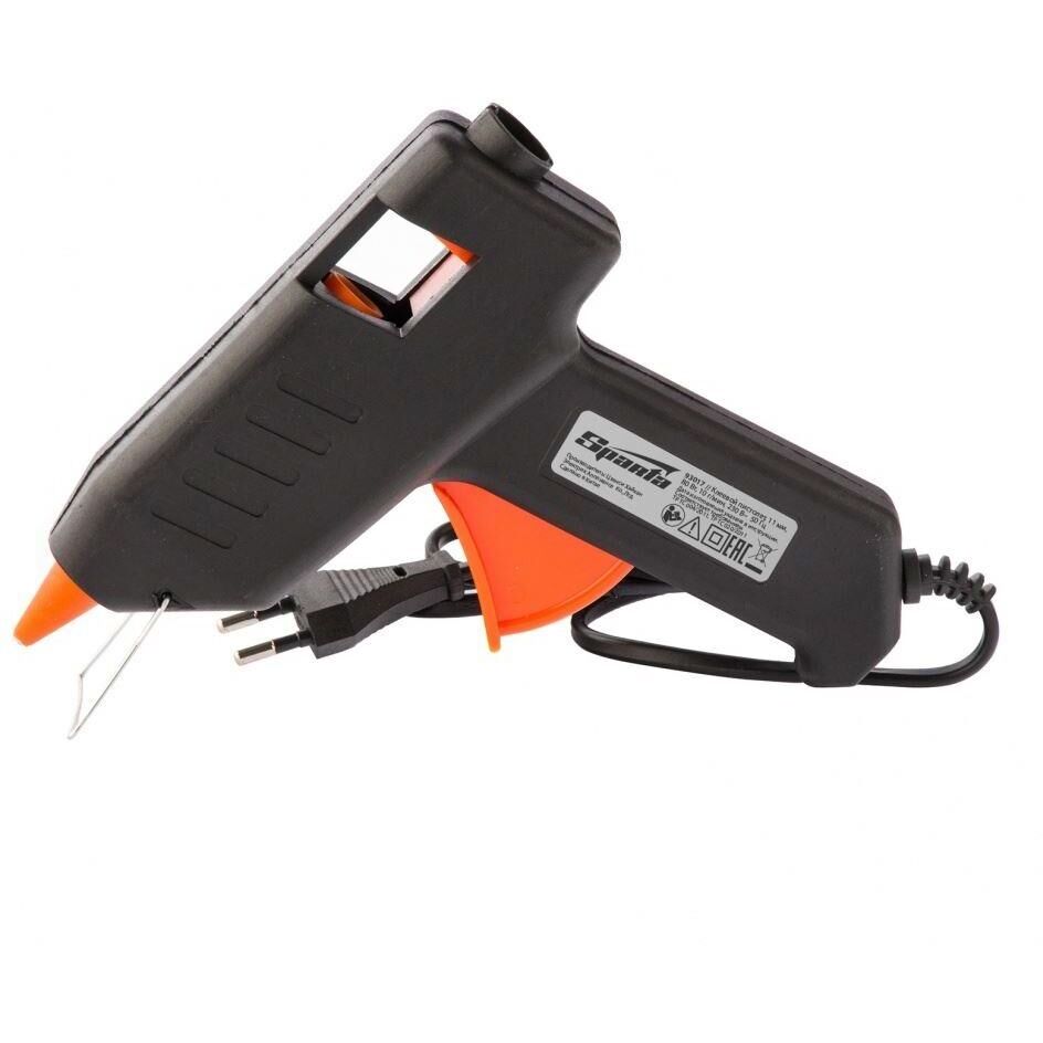 Клеевой пистолет Sparta 930305, 11 мм, 80 Вт, пригодится при проведении несложных бытовых работ: склеивания бумаги, дерева, пластика и других материалов. Он станет незаменимым помощником для частных мастеров, которые занимаются мелким ремонтом, упаковкой, сборкой различных моделей и рукоделием. Время нагрева до максимальной температуры не превышает 5 минут.ПреимуществаКорпус из ударопрочной пластмассы устойчив к механическим повреждениям.Во время работы пистолет можно устанавливать на металлическую скобу-подставку, это повышает удобство эксплуатации.Специальное окошко позволяет отслеживать уровень расхода стержня внутри ствола.Противокапельная система обеспечивает оптимальный расход клея.