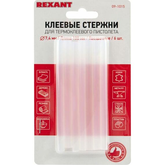 Клеевые стрежни REXANT (09-1015) клеевые стержни, O=7мм, 100мм, прозрачные