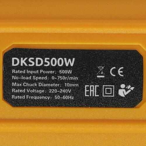 Дрель DEKO DKSD500W идеально подойдёт для сверления деревянных и металлических поверхностей. Устройство очень легкое и его удобно держать в руке, что, несомненно, облегчает работу.; Технические характеристики; Общие характеристики; Тип инструмента; безударная дрель; Питание; от сети; Тип двигателя; щеточный; Тип патрона; быстрозажимной; Напряжение, В; 220-240; Макс. диаметр патрона, мм; 10; Количество скоростей работы; 1; Макс. обороты, об./мин; 0-750; Макс. крутящий момент, Нм; 28; Мощность, Вт; 500; Диаметр сверления, мм; 0-13; Функции и возможности; Наличие подсветки; нет; Наличие удара; нет; Наличие реверса; есть; Поддержание постоянных оборотов под нагрузкой; нет; Дополнительная информация; Вес, кг; 1,19; Поставляется в; коробке